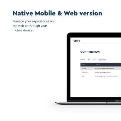 We conceptualised, designed and built CRWD. CRWD helps users find relevant experiences, close by, based on their preferences like music, cuisine and even venue average age group.